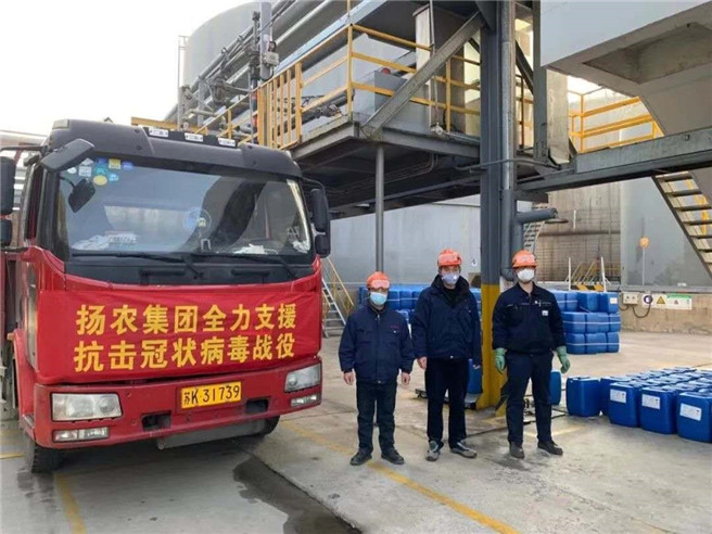 中化集團下屬化工事業部黨委著力統籌抓好消毒產品等防疫物資的生產,為抗擊疫情提供保障。下屬揚農集團黨委緊急調度儀征廠區,組織成立抗擊疫情黨員先鋒突擊隊,24小時滿負荷生產次氯酸鈉,增開鹽酸工段的次氯酸鈉工序,將次氯酸鈉日產量提高到200噸,全力保障防疫消毒物資的供應,已陸續向武漢等地區捐贈288噸次氯酸鈉。并主動承擔保障揚州市及江蘇省鹽城、鎮江等5個地級市的自來水消毒用涉水次氯酸鈉供給的重任,每日供應12%涉水次氯酸鈉產品165噸,同時,還對地方政府機關、社區以及揚州市127家單位無償供應次氯酸鈉,用實際行動支援抗疫一線。