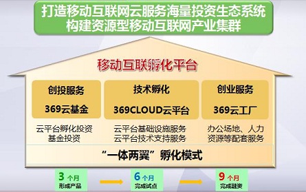 “369”云平臺借助中央企業(yè)在信息安全等方面的獨特優(yōu)勢,積極圍繞公共服務和傳統(tǒng)產(chǎn)業(yè)升級開展創(chuàng)業(yè)孵化,帶動社會創(chuàng)新創(chuàng)業(yè),形成獨特的“資源型”移動互聯(lián)網(wǎng)發(fā)展模式。“369”云平臺聚焦政府及公共服務行業(yè),積累了大量用戶和數(shù)據(jù)資源,為創(chuàng)業(yè)者提供高起點的創(chuàng)業(yè)平臺,提高創(chuàng)業(yè)成功率。具體做法一是為創(chuàng)業(yè)者提供“積木式”定制開發(fā)和研發(fā)眾包服務,使創(chuàng)業(yè)者的研發(fā)投入降低30%以上,開發(fā)時間縮短2/3以上,極大降低創(chuàng)業(yè)初期的試錯成本;二是打造從投融資到公司化運營的“一站式”全程創(chuàng)新創(chuàng)業(yè)孵化模式,實現(xiàn)實體孵化園區(qū)與眾扶、眾籌服務深度融合,使創(chuàng)業(yè)者只需要帶著創(chuàng)意直接拎包入駐孵化基地,即可實現(xiàn)創(chuàng)新創(chuàng)業(yè)成功。三是創(chuàng)新資本投入方式,建立“財務公司+產(chǎn)業(yè)基金+投資公司+上市平臺”四位一體的創(chuàng)新創(chuàng)業(yè)投融資體系,實現(xiàn)資金鏈對創(chuàng)新鏈和產(chǎn)業(yè)鏈的全覆蓋。