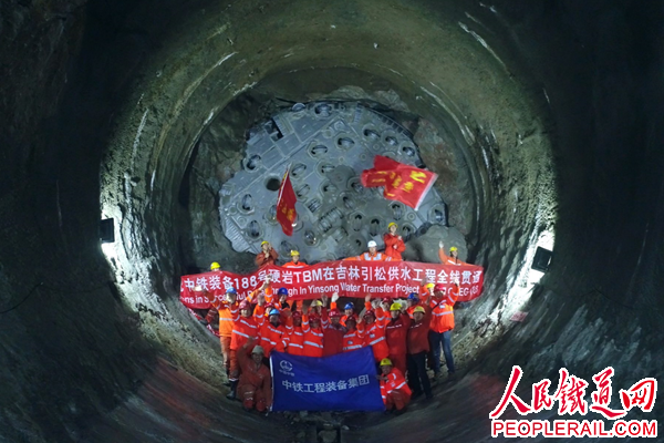 中國人到底能否研制出自己的TBM?檢驗答案的這一天很快到來,2014年1月,吉林省有史以來投資規模最大、輸水線路最長、受益面積最廣、施工難度最高的大型跨區域引調水工程——吉林省中部城市引松供水工程(簡稱“吉林引松”)TBM施工標段面向全球公開招標。經過多次優化設計,經過業主與專家的評定,中鐵裝備最終拿到了國內首臺國產TBM的訂單。一年以后,依托國家“863、973”計劃自主研制的直徑8.03米巖石隧道掘進機(TBM)—“永吉號”成功下線,應用于吉林引松供水工程總干線四標項目,這是全線地質最復雜、施工難度最大的標段。當年5月始發的“永吉號”,歷經多處溶腔溶洞群、碳質板巖段、斷層破碎帶、土層入侵洞段、特大涌水涌泥等不良地質,一路破除險阻,在國內施工歷史上首次成功穿越長達7000米的灰巖巖溶區,于2016年6月、2017年11月分別創下了月掘進1226米、1318.7米的全國紀錄,實現了一系列國內TBM施工史上的重大突破。