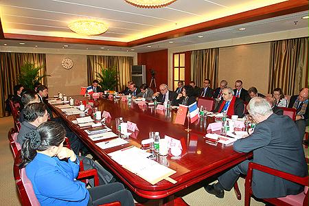 徐福順副主任首先歡迎拉法蘭先生來(lái)訪(fǎng),并感謝拉法蘭先生和法國(guó)企業(yè)家為中法友誼作出的貢獻(xiàn)。徐福順副主任介紹了中國(guó)國(guó)有企業(yè)改革、改組、發(fā)展的基本情況,中央企業(yè)未來(lái)布局結(jié)構(gòu)調(diào)整的基本思路以及中國(guó)企業(yè)國(guó)際化經(jīng)營(yíng)的情況。