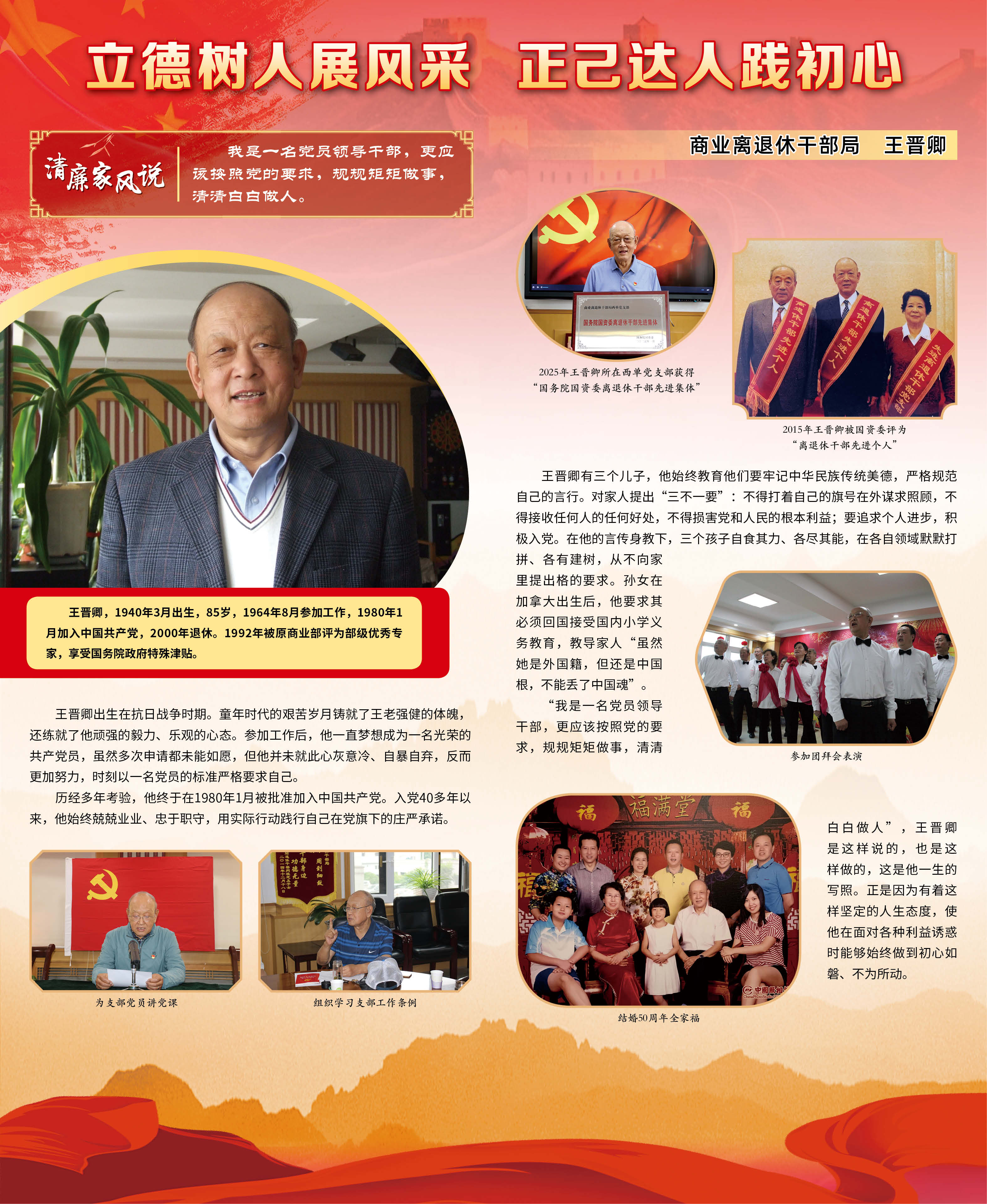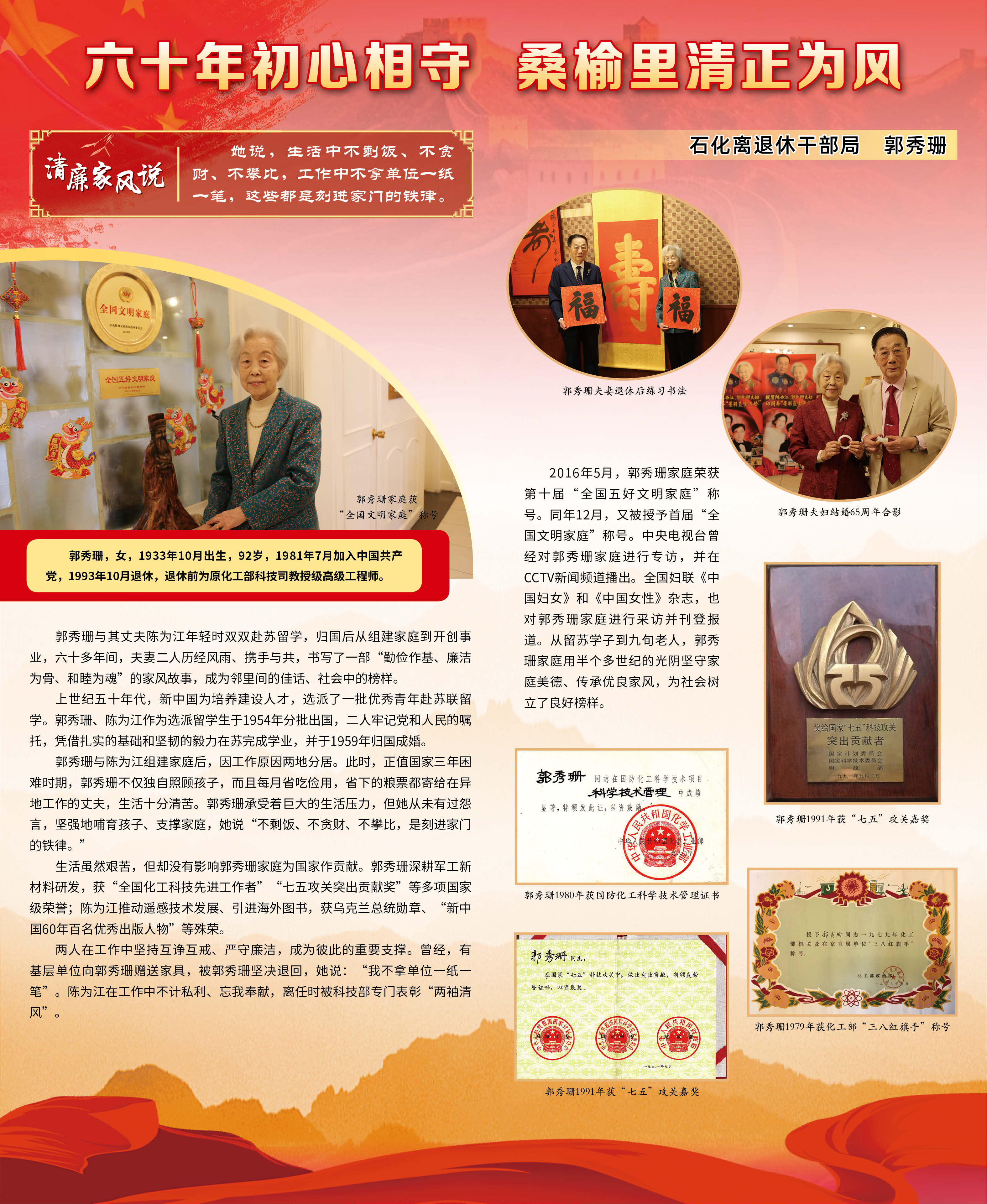 七一期間,國務院國資委管理局精心組織舉辦離退休干部清廉家風故事展,以圖文并茂的形式展出了10個具有代表性的老同志的家風故事。活動期間,委機關廣大干部職工積極觀展,大家紛紛表示,這些故事質樸感人、蘊含著歷久彌新的清廉理念和家國情懷,是老同志留下的寶貴“傳家寶”,一定要向老同志們學習,讓良好的家風在傳承中弘揚,助力國資央企黨風廉政建設,助力營造風清氣正的良好氛圍。