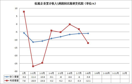 1-8月份,安徽省屬企業(yè)累計(jì)實(shí)現(xiàn)營(yíng)業(yè)收入4001.2億元,同比下降5.9%,實(shí)現(xiàn)利潤(rùn)總額153億元,同比下降12.1%;實(shí)現(xiàn)勞動(dòng)生產(chǎn)總值746.8億元,同比下降3.9%,降幅較1-7月份擴(kuò)大0.5個(gè)百分點(diǎn)。其中,8月份,省屬企業(yè)實(shí)現(xiàn)營(yíng)業(yè)收入528.5億元,環(huán)比增長(zhǎng)1.9%;實(shí)現(xiàn)利潤(rùn)總額7.6億元,環(huán)比下降51.8%。月末資產(chǎn)總額12795.4億元,同比增長(zhǎng)14.4%,所有者權(quán)益總額4346.5億元,同比增長(zhǎng)20.3%。截至2015年7月底,與全國(guó)省級(jí)監(jiān)管企業(yè)相比,省屬企業(yè)資產(chǎn)總額、營(yíng)業(yè)收入均位居第8位,利潤(rùn)總額位居第7位。總體經(jīng)濟(jì)運(yùn)行情況如下: