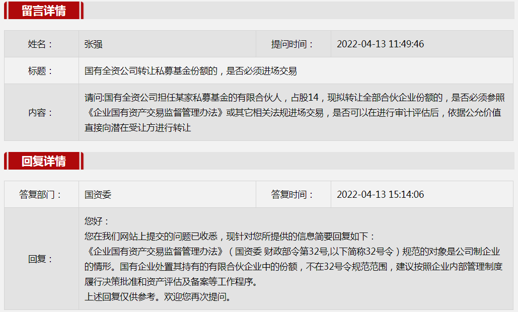4.關于國有全資公司轉讓私募基金份額的問題。
