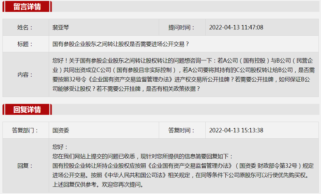 2022年4月國資委網站政務咨詢欄目部分網友提出的咨詢,我們初步做出了認真的回應,現選擇五條關注度高、點擊量高的問題,再次推薦分享。