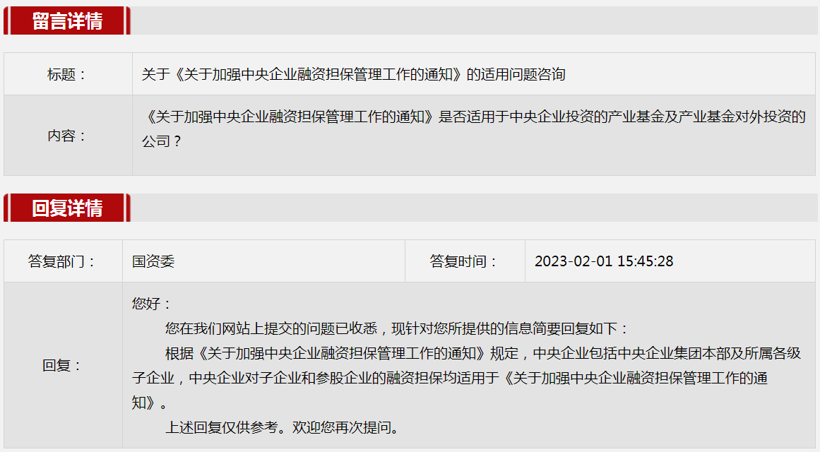 1.關(guān)于《關(guān)于加強(qiáng)中央企業(yè)融資擔(dān)保管理工作的通知》的適用問(wèn)題咨詢。