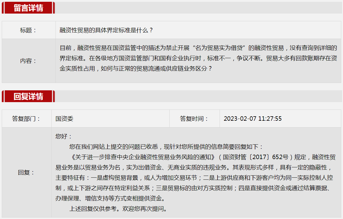 2023年2月國(guó)資委網(wǎng)站政務(wù)咨詢欄目部分網(wǎng)友提出的咨詢,我們初步做出了認(rèn)真的回應(yīng),現(xiàn)選擇五條關(guān)注度高、點(diǎn)擊量高的問(wèn)題,再次推薦分享。