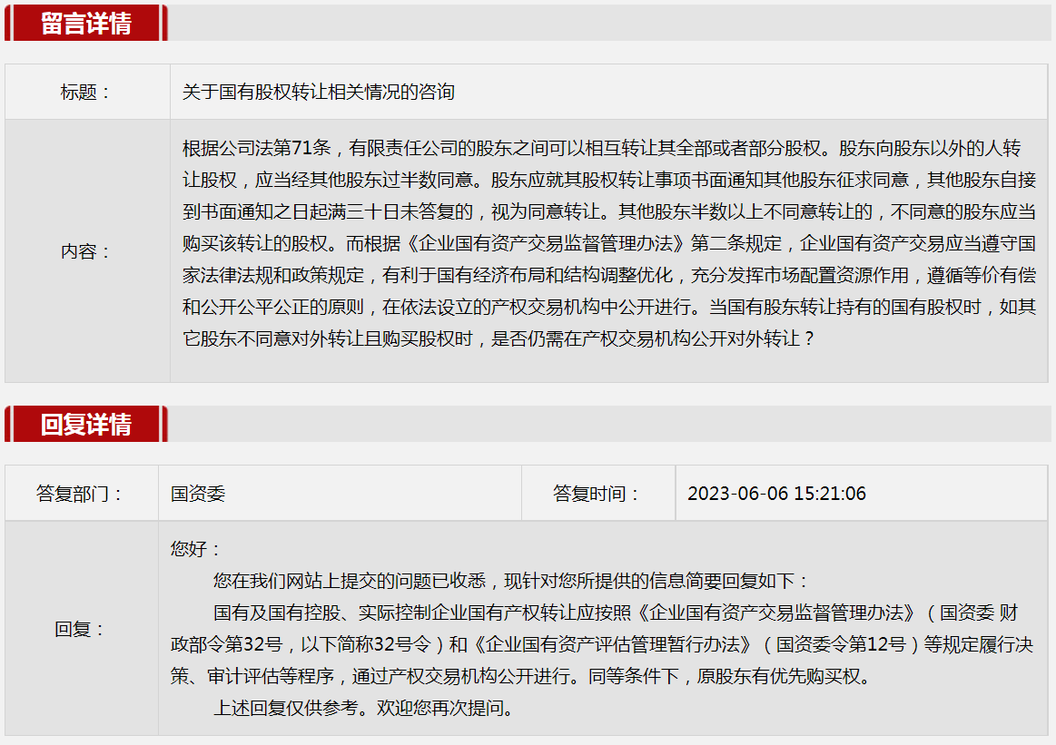 1.關(guān)于國有股權(quán)轉(zhuǎn)讓相關(guān)情況的咨詢。