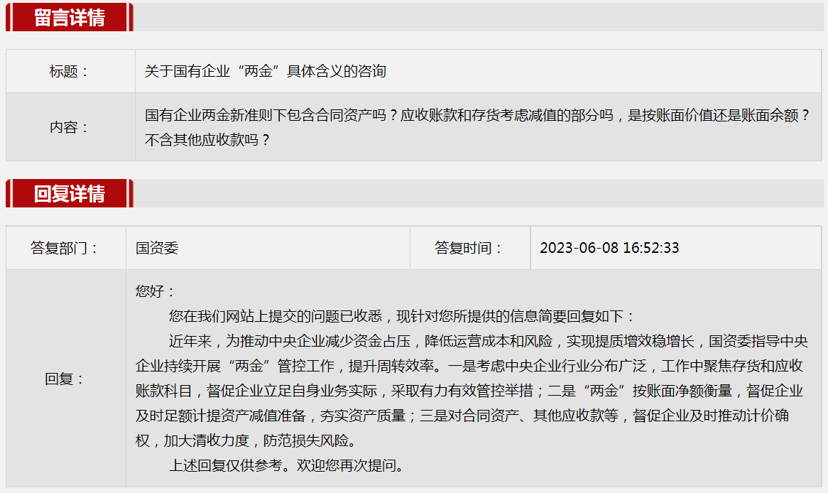 2.關(guān)于國有企業(yè)“兩金”具體含義的咨詢。