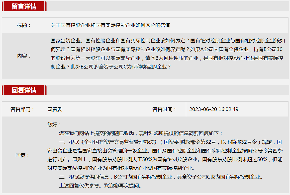 3.關(guān)于國有控股企業(yè)和國有實(shí)際控制企業(yè)如何區(qū)分的咨詢。