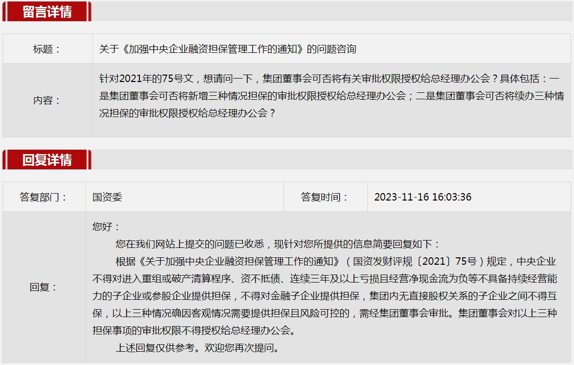 3.關(guān)于《加強中央企業(yè)融資擔保管理工作的通知》的問題咨詢。