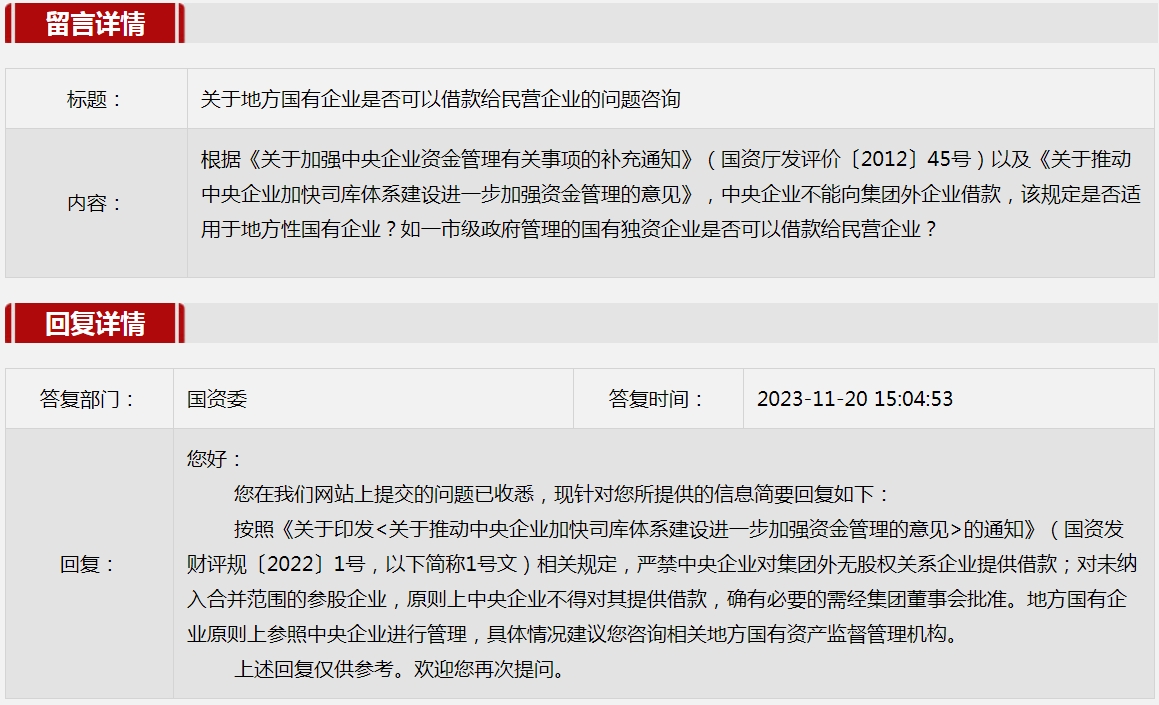 4.關(guān)于地方國有企業(yè)是否可以借款給民營企業(yè)的問題咨詢。