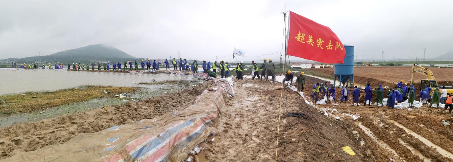 巢湖水位達到12.83m、破歷史最高水位紀錄,沿巢河湖全線超保,濱湖新村、濱湖苑項目19日凌晨一點頂風冒雨,驅車趕往巢湖支援大壩參與護坡。