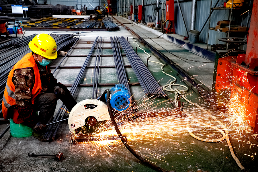 建好“清涼驛站”。項目在施工一線建立了多個“清涼驛站”,保證綠豆湯、藿香正氣水、人丹、風油精等多種防暑降溫藥物的儲備及足額發放,并做好防暑降溫常識普及教育和宣傳工作,讓現場作業的農民工有一個清涼舒適的工作環境。圖為現場工人鋼筋切割。