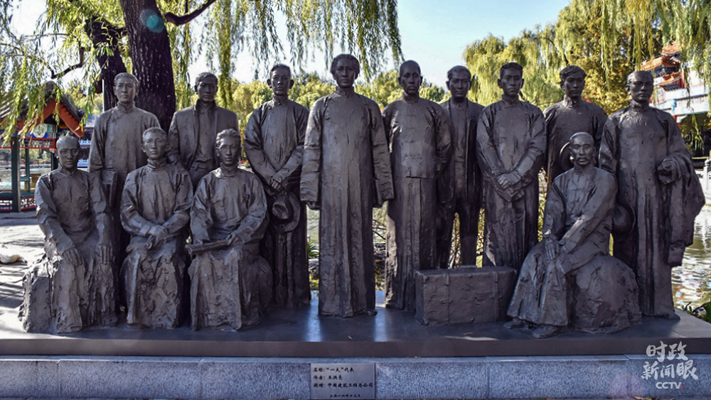 △中央黨校校園內(nèi)名為“一大代表”的主題雕塑