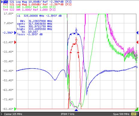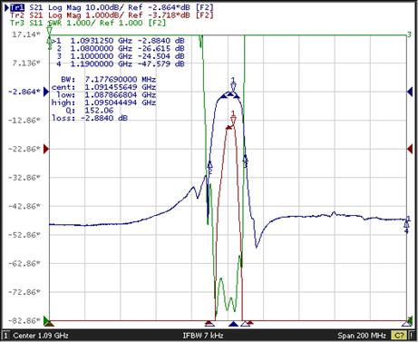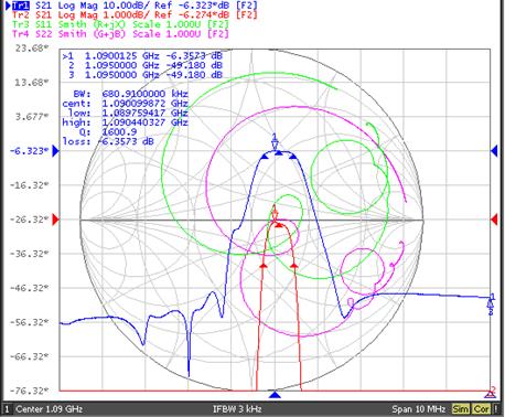 (3)極窄帶SAW濾波器具有帶寬極窄的特點,設計上采用穩定性好的水晶材料,主要應用于電臺系統中,主要需求有1090MHz、1220MHz及1575MHz。