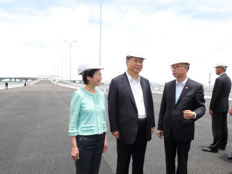 習近平考察港珠澳大橋香港段建設工地時指出,建設港珠澳大橋是中央支持香港、澳門和珠三角區域更好發展的一項重大舉措,是“一國兩制”下粵港澳密切合作的重大成果。希望大家積極推進后續工作,確保大橋順利通車、安全運行。習近平在考察香港國際機場第三跑道時表示,中央支持香港機場建設第三跑道,就是為了支持香港鞏固國際航空交通樞紐地位,保持和提升整體競爭力。希望大家把好事辦好,確保工程建設安全高效,項目建成后發揮最大效益。