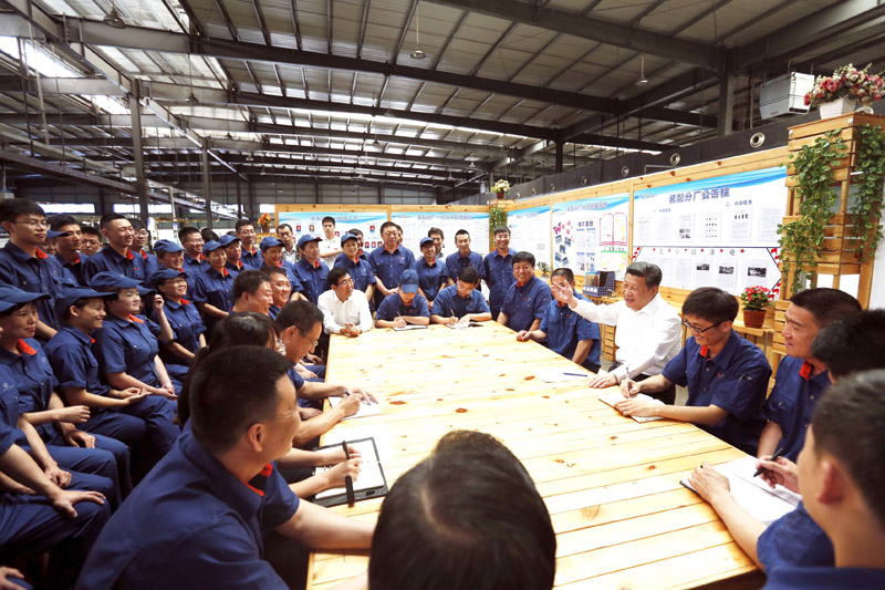 2015年7月17日,在吉林東北工業集團長春一東離合器股份有限公司,習近平看產品和精益管理模式展示,視察熱處理分廠車間和離合器零部件生產線、自動化裝配線,并與企業勞模、科研人員和一線職工親切交流一一握手。