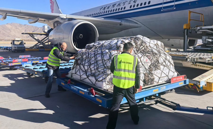中航集团:2025年1月9日,派出两架航班,向西藏日喀则震区运送救灾人员与物资。...