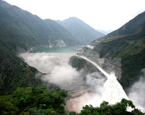 圖1:大渡河瀑布溝水電站泄洪現(xiàn)場(chǎng)